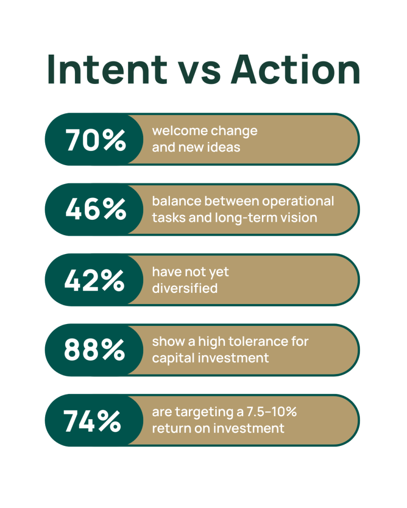 - 74% are targeting a 7.5–10% return on investment, suggesting clear and grounded financial ambition